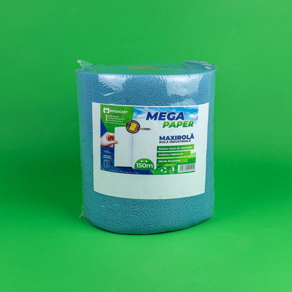 '-Rola de hartie industriala este realizata din hartie reciclata, cu o putere mare de absorbtie.-Produs in Romania si recomandat pentru o gama larga de utilizare.-Foile de hartie se desprind usor, fara a se rupe sau destrama.-La folosire nu lasa scame, putand fi folosite in diferite activitati.-Rolele de hartie avand o dimensiune adecvata, sunt usor de depozitat si de transportat.Dimensiune: Diametru 24cm x Inaltime 26cmLungime rola: 150m